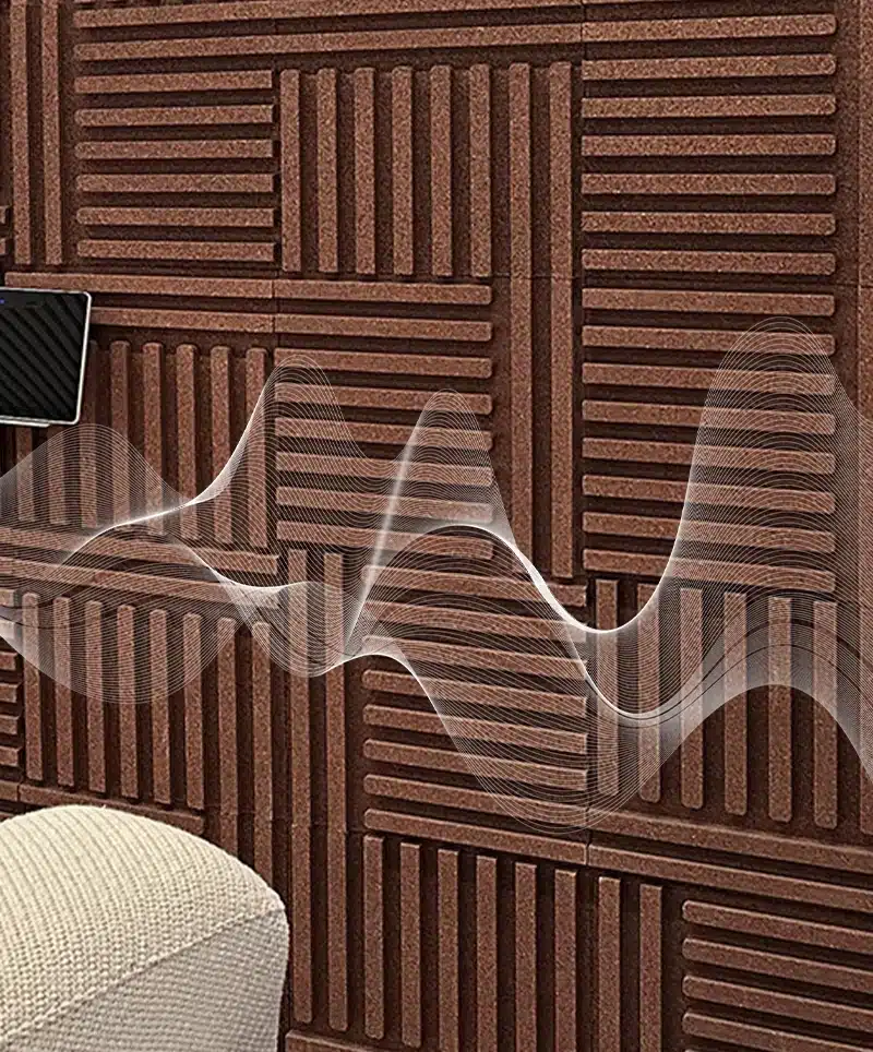 Ob aus konserviertem Moos oder natürlichem Kork – jede Wand, Fliese oder jedes Paneel wird wegen seiner Ästhetik und seiner schallabsorbierenden Eigenschaften ausgewählt.