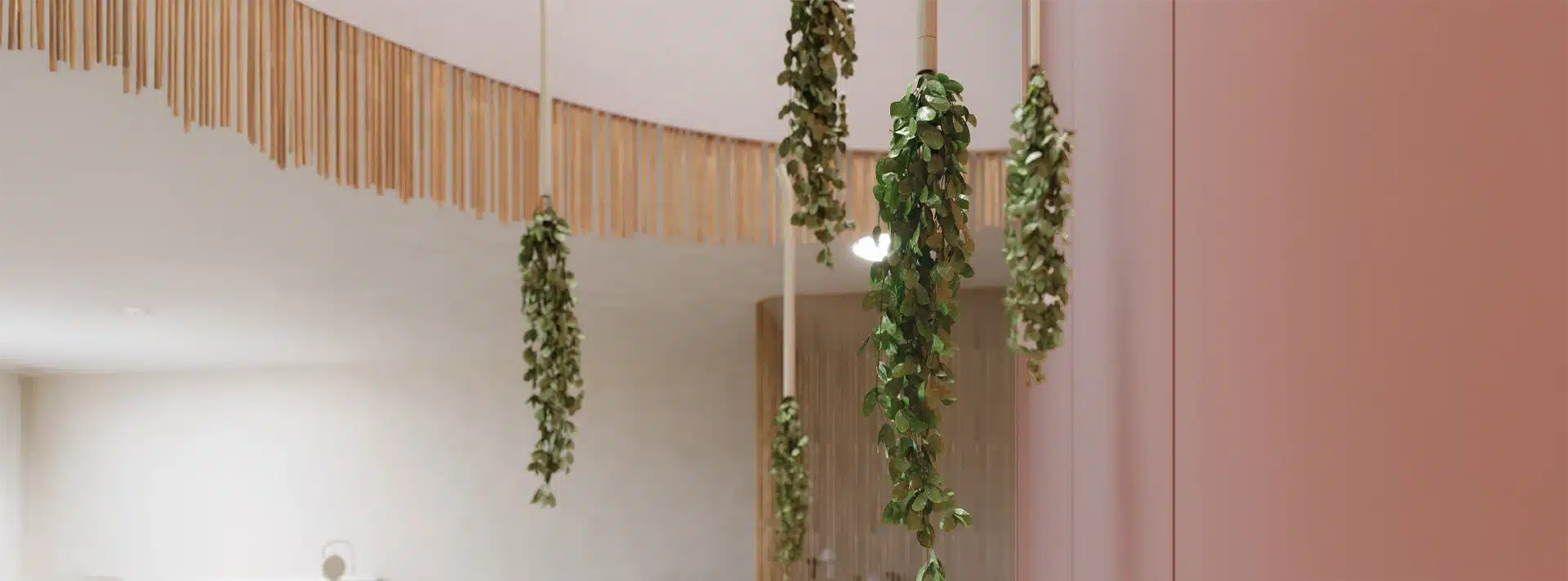 Cascade ist ein dekoratives hängendes Element das konserviertes Laubwerk von oben in jeden Innenraum bringt. Mit seinem modularen Aufhängesystem und seiner skulpturalen Form verleiht es Räumen eine subtile biophile Präsenz und eine starke gestalterische Signatur.