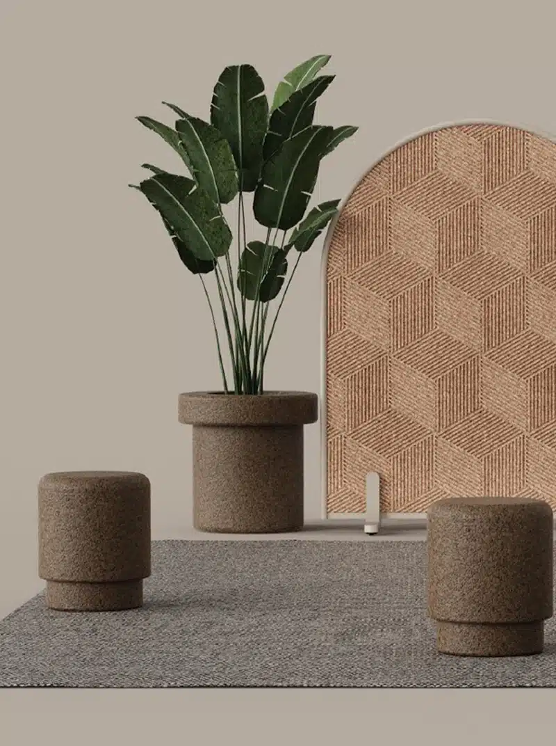 Sourced responsibly, cork is harvested without harming the tree. It regenerates naturally, helping absorb CO₂ and support biodiversity, making every pouf a conscious choice for a better planet.