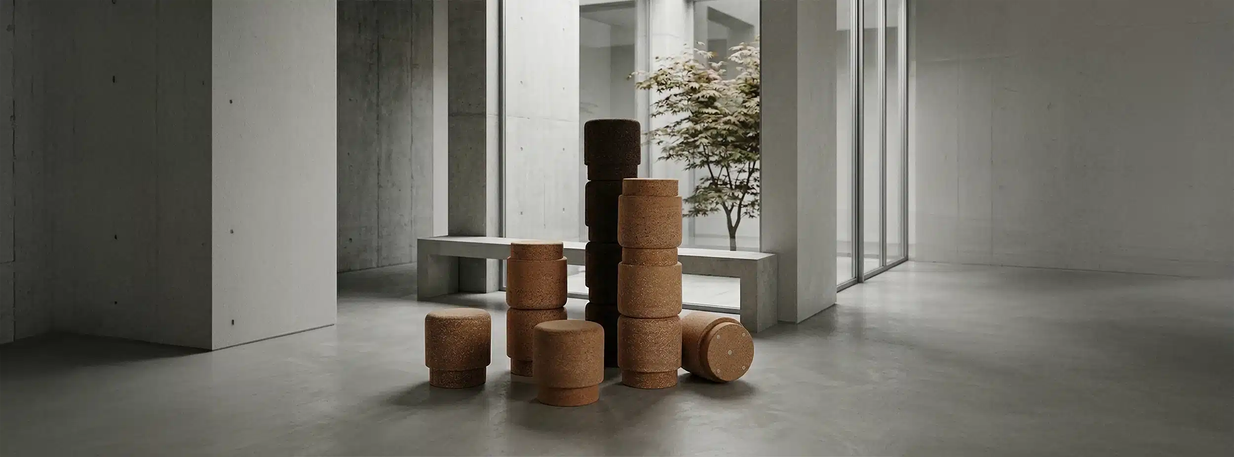 Dampfgebunden ohne synthetische Zusätze ist Blähkork leicht, widerstandsfähig, wasserdicht und von Natur aus schallabsorbierend. Seine warme, taktile Oberfläche bringt organischen Komfort in jeden Raum.
