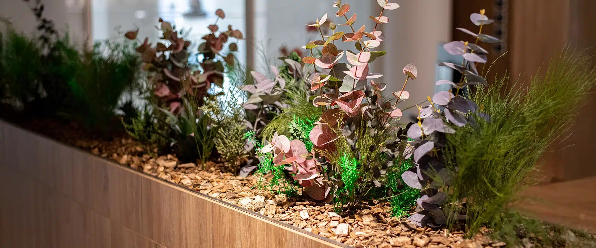 Die individuellen Pflanzfüllungen von Greenmood verwandeln gewöhnliche Pflanzgefäße in biophile Gestaltungselemente. Durch das Spiel mit Texturen Volumen und Farben entsteht eine organische harmonische Präsenz die sich gleichermaßen für dynamische Arbeitsumgebungen Lobbys oder Entspannungsbereiche eignet. Vollständig natürlich und pflegefrei sorgen sie dauerhaft für eine grüne Atmosphäre die Ästhetik Komfort und Ruhe vereint.